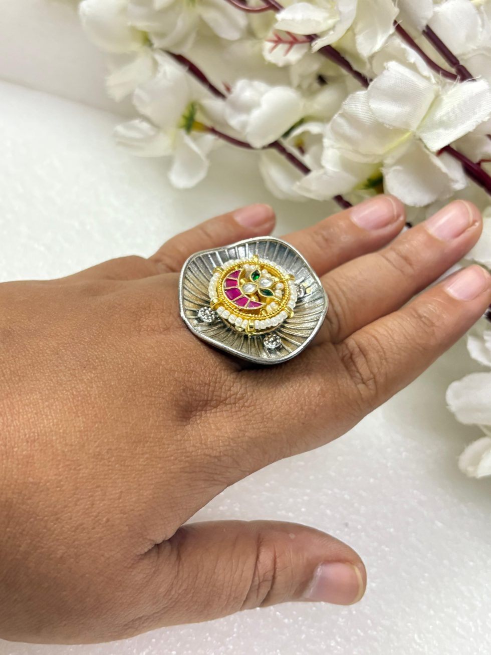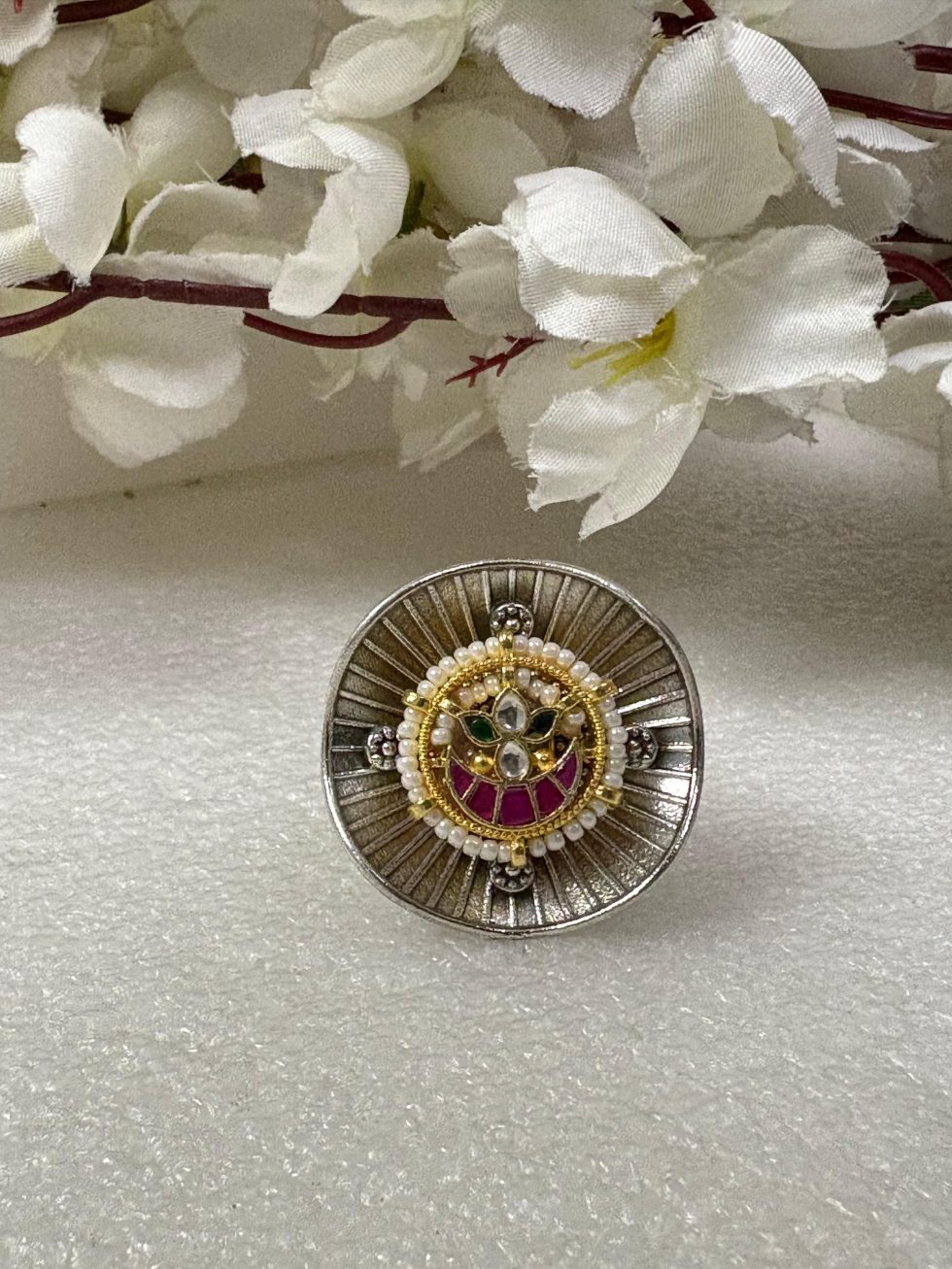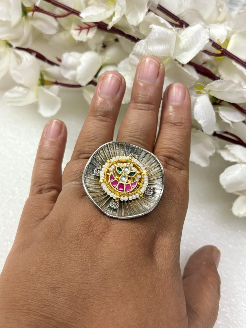 Be the first to review “Antique Dual-Tone Kundan Ring” Cancel reply