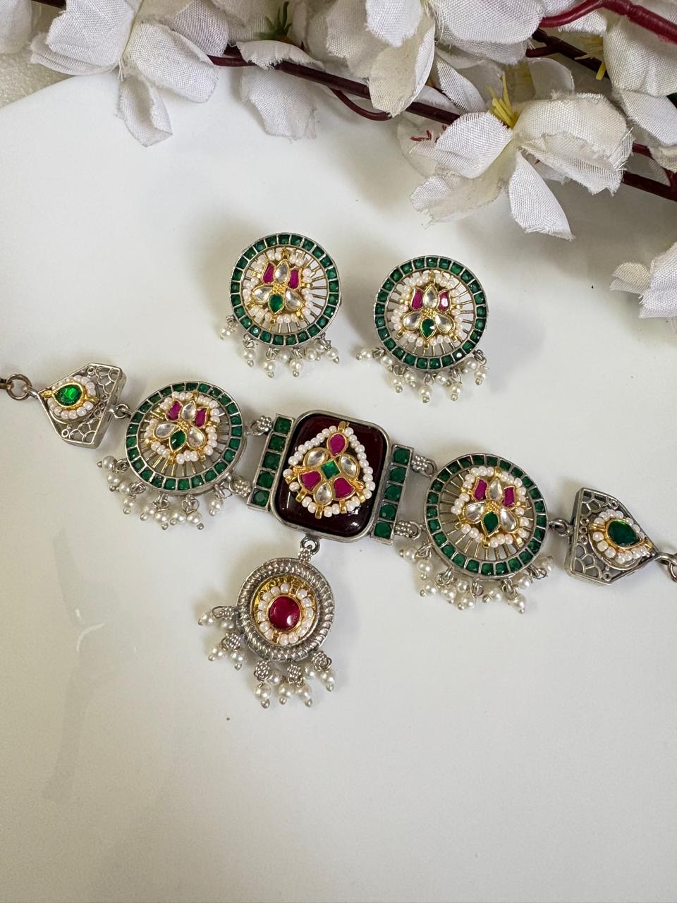 Dual-Tone Kundan Choker Set