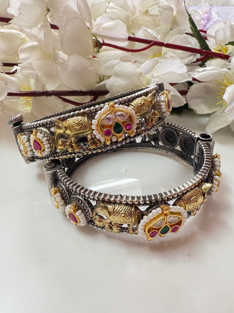 Striking Kundan fusion bangles of Dualtone Brass Base metal (pair kada)