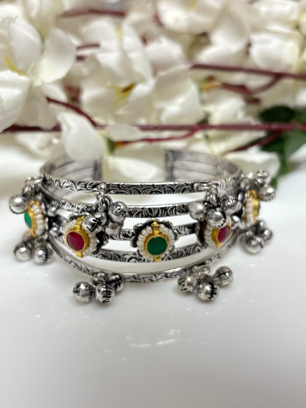 Silver broad Kundan Fusion Kada