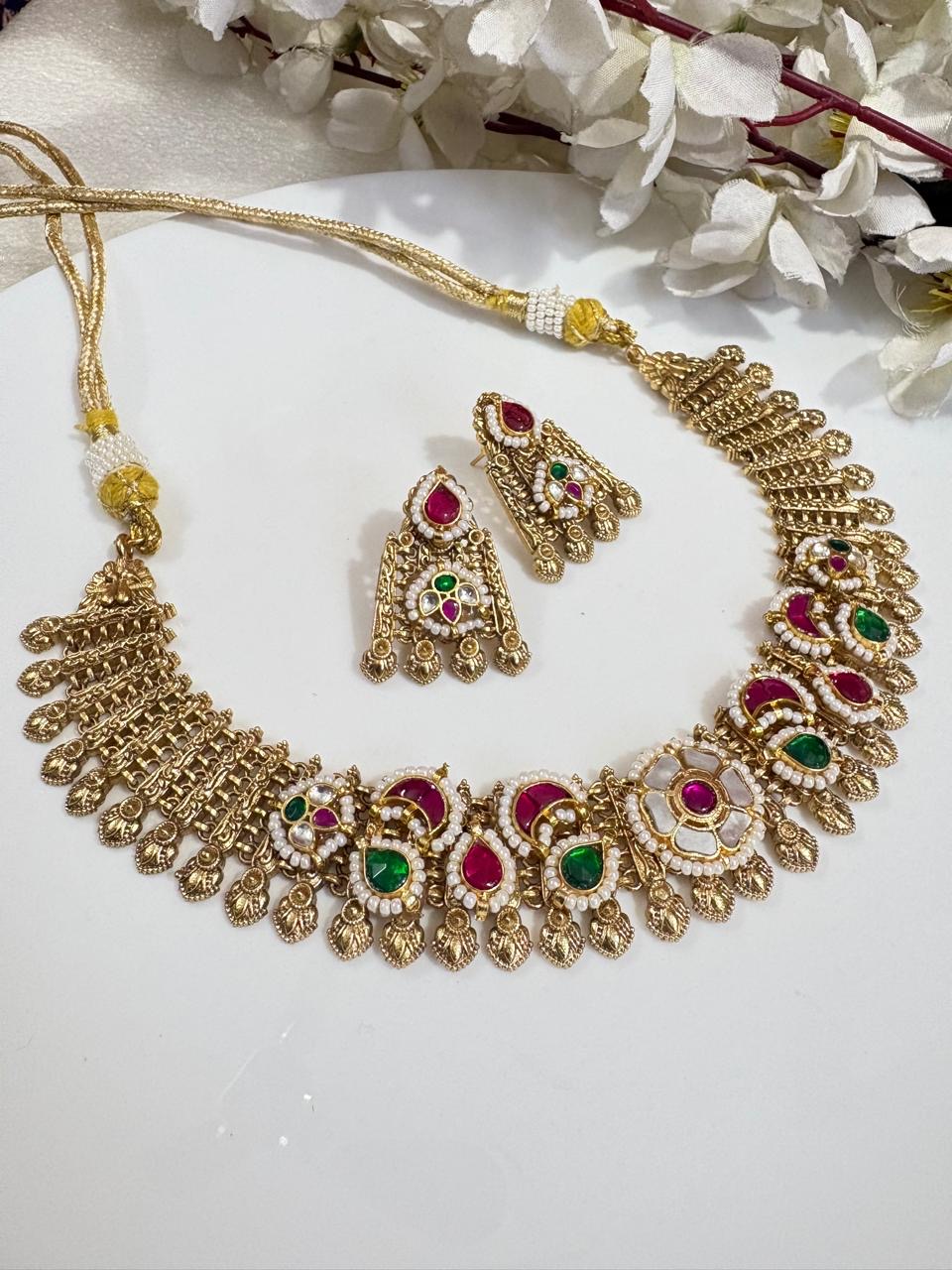 Gold Matt Kundan Choker Set