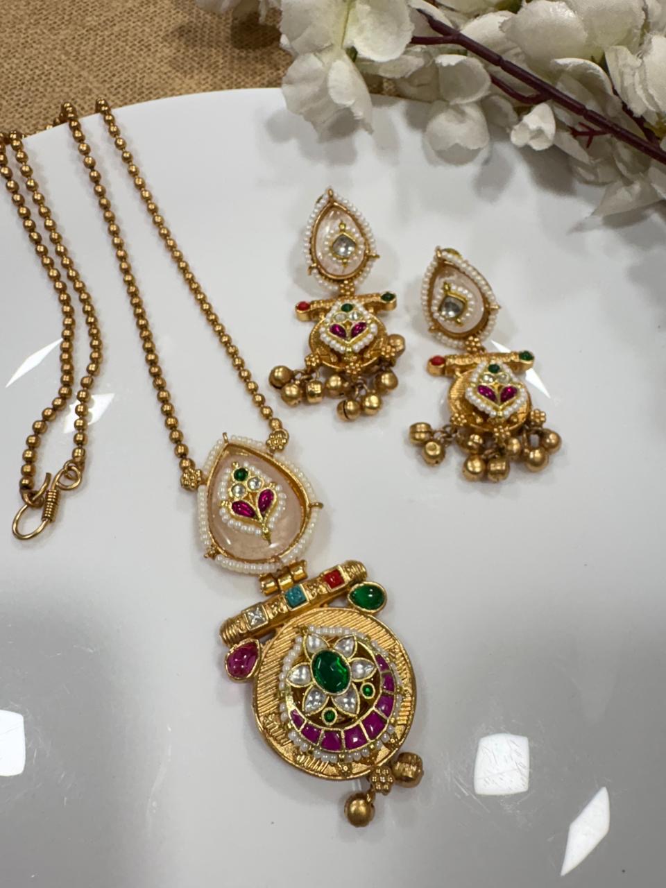 Brass Base Jewelry Set, crafted to complement your favorite traditional attire., this set is your go-to for adding a touch of luxury to every outfit. Embrace timeless beauty and sophistication with this stunning accessory.
