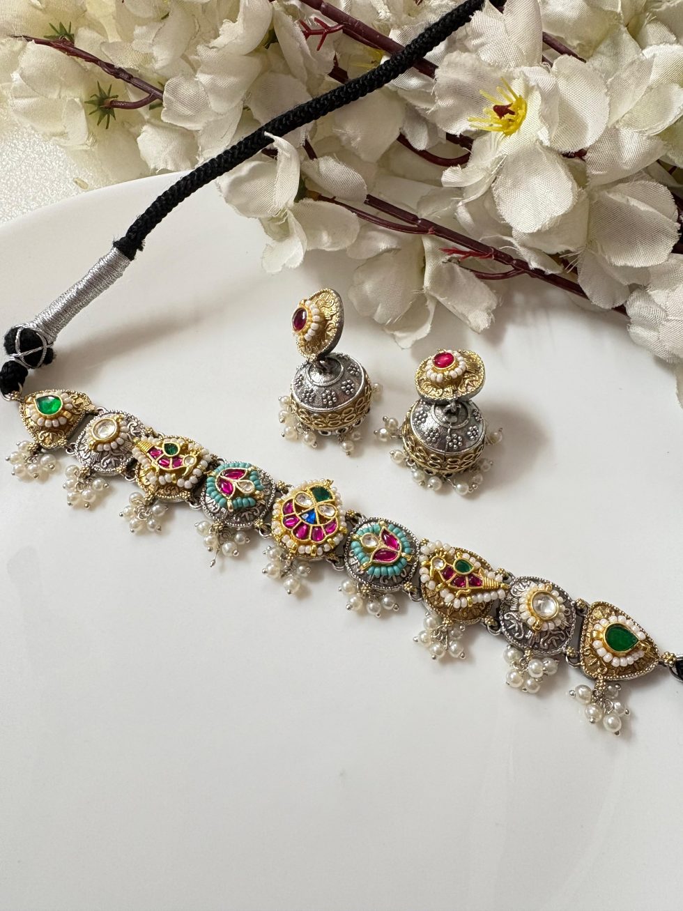 SLA Dualtone Double Layered Kundan Fusion Choker Set