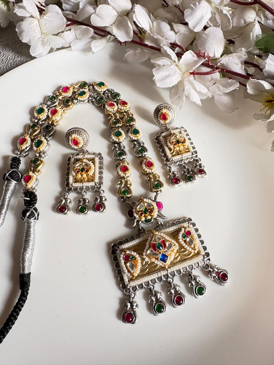 Be the first to review “Kundan Fusion Dual-Tone Long Necklace Set” Cancel reply