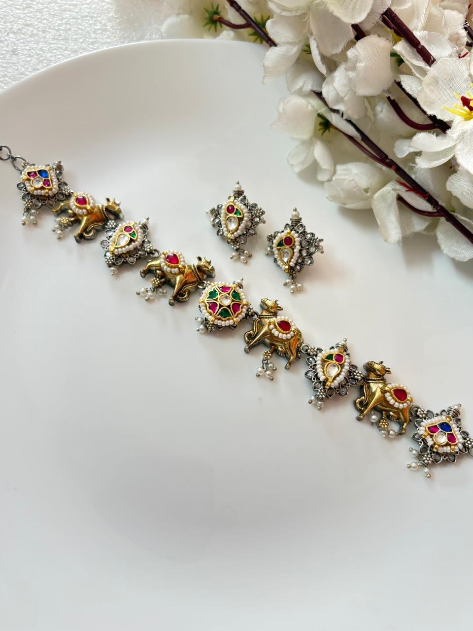 This item: Kundan Fusion Dual tone Nandi Choker set