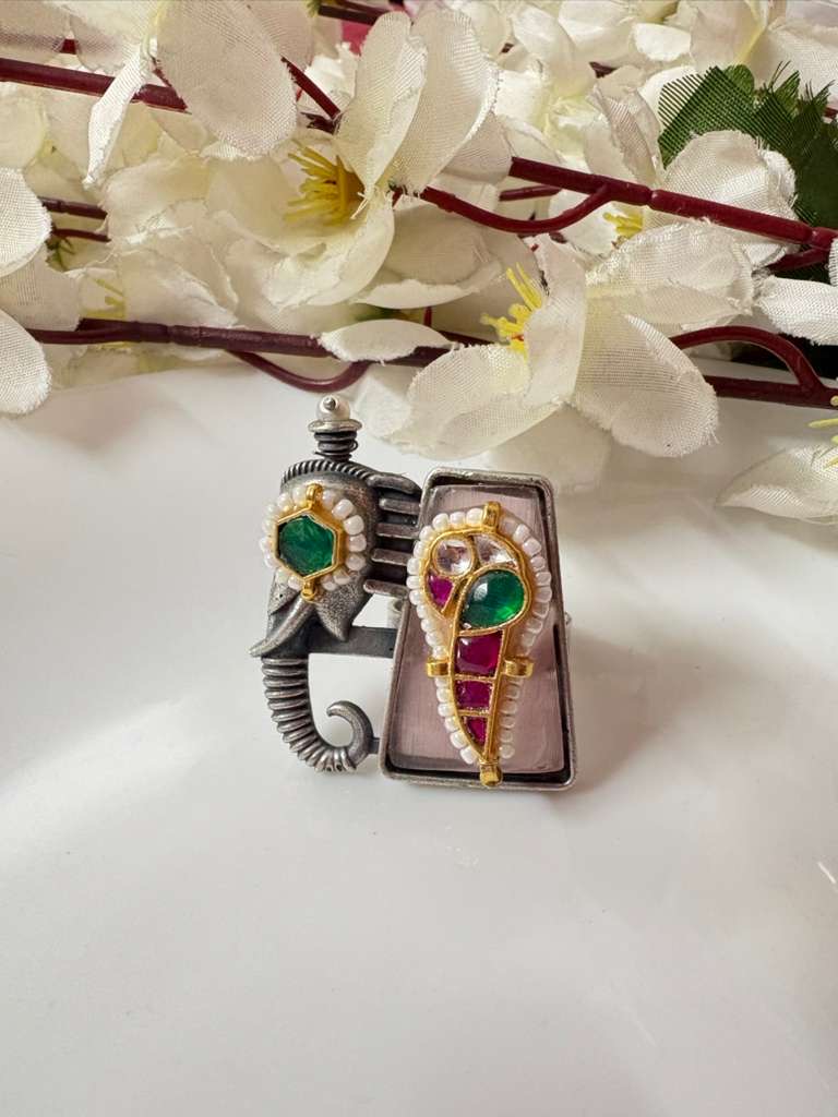 Be the first to review “Kundan Fusion Elephant Stone Ring”
