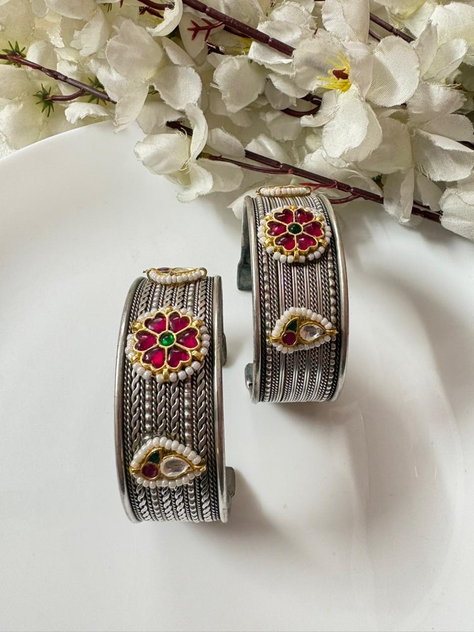 Striking Kundan fusion bangles of Dualtone Brass Base metal
