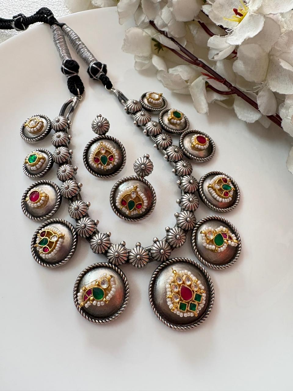 Royal Green Kundan Dualtone Hansli Style Necklace Set