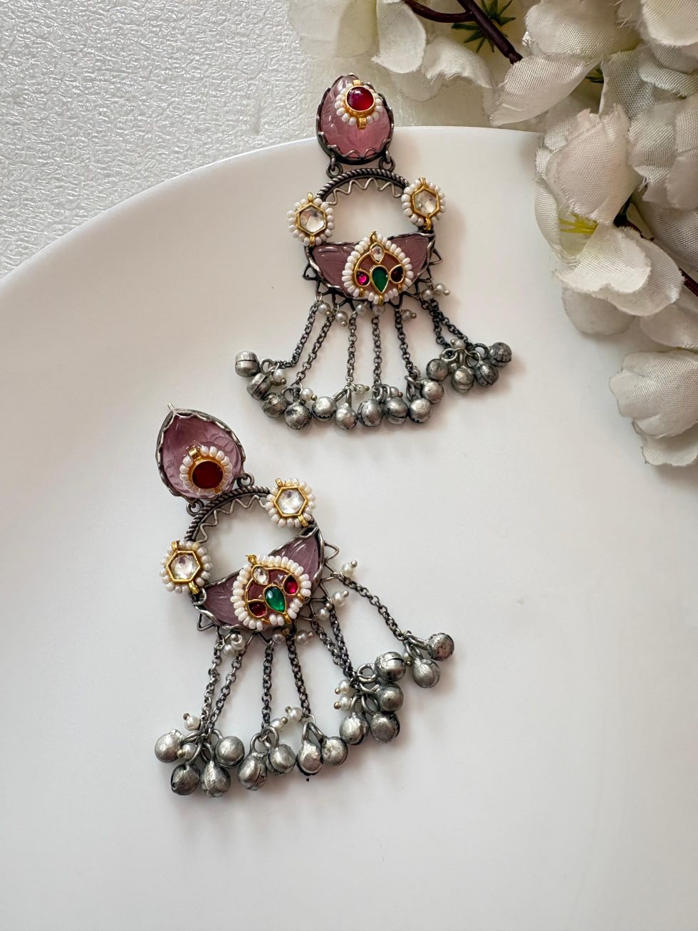 Kundan Fusion on Craved Stones Earrings