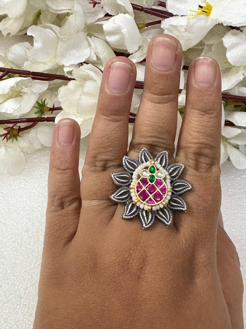 Our adjustable silver oxidized ring, an exquisite statement piece that marries timeless vintage elegance with a modern twist.