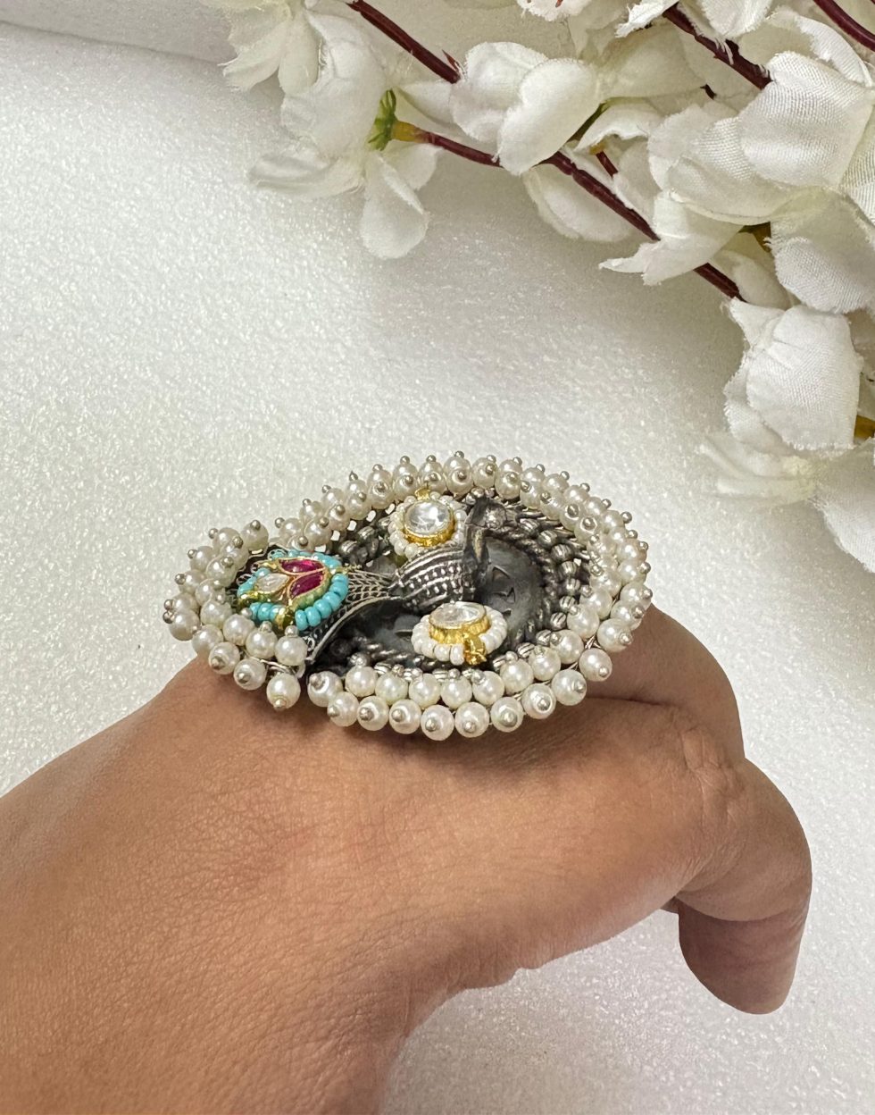 Our adjustable silver oxidized ring, an exquisite statement piece that marries timeless vintage elegance with a modern twist.