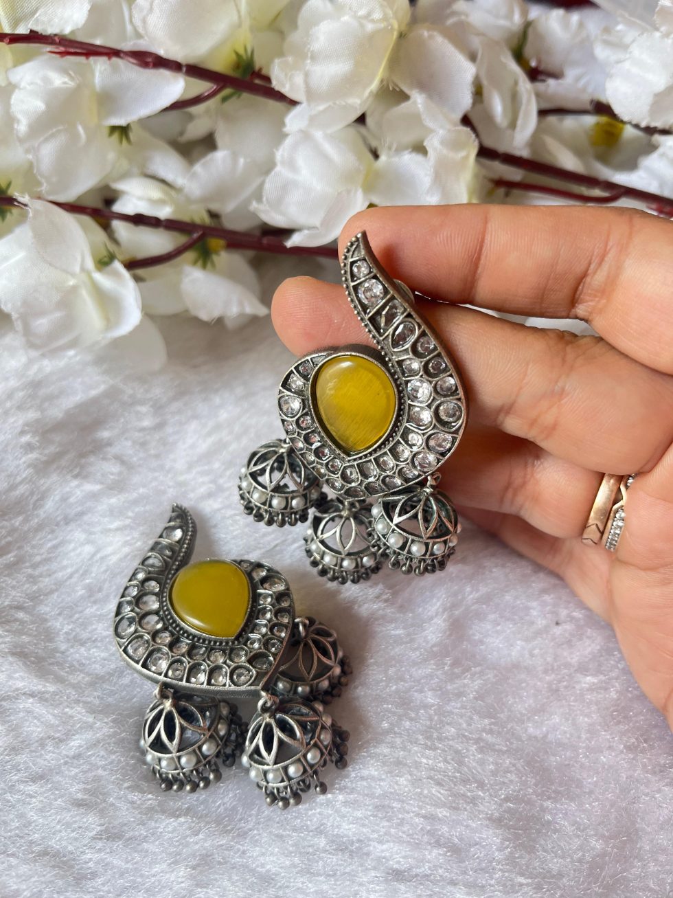 Statement earrings , silver polish, this versatile pair is handcrafted in German silver, perfect for weddings, festivals, and cultural celebrations